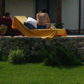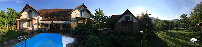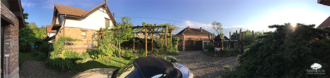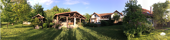 A winding path starting in the garden takes the guests up the hill through a beautiful plum trees orchard to a top platform overlooking the property and the entire valley. You can stop on the way for a quick basketball game or enjoy a rest with relaxing views back to the house on the small terrace at the top of the orchard.